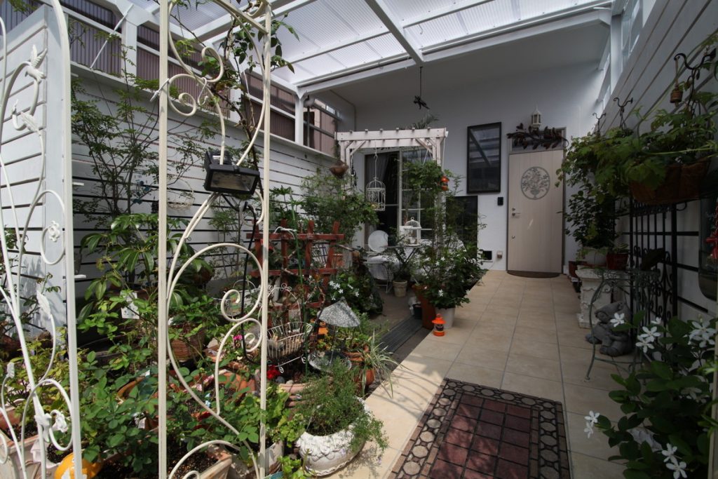 白を基調にした庭に、M様が花や緑を入れてくださいました。ご近所さんや通りかかりの人たちが立ち止まってみてくださいます。